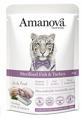 Amanova Cat Sterilised Fish & Turkey - biała ryba i indyk – pełnoporcjowa mokra karma, której możesz zaufać.